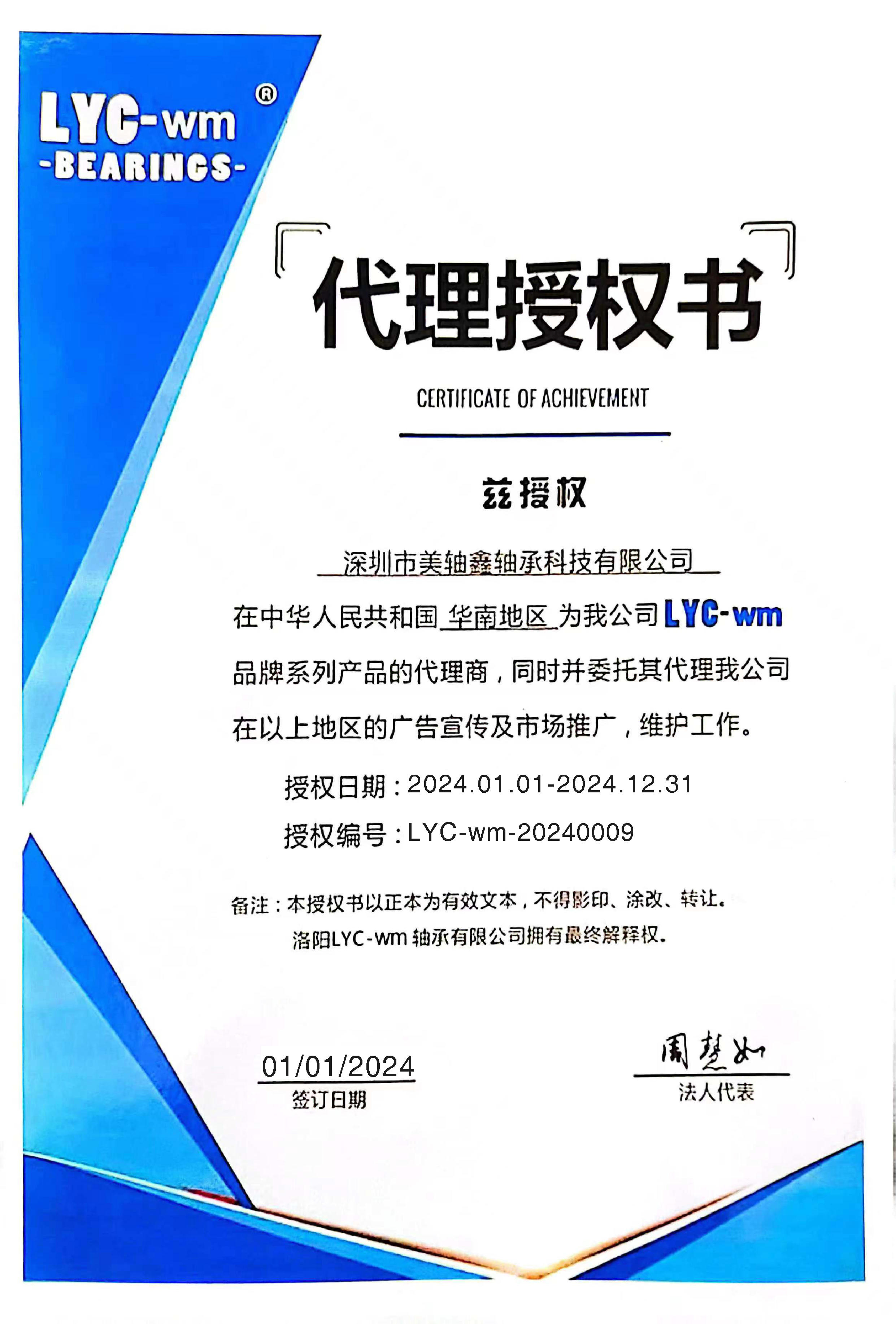 2024年LYC-WM授權證書